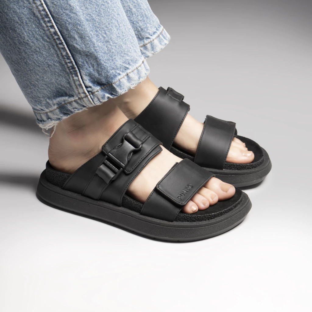 La capellada está confeccionada en material eco cuero y combinada con apliques y texturas.