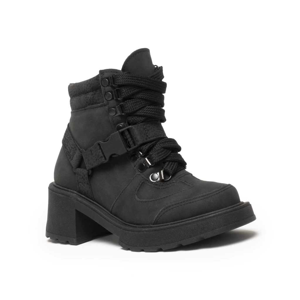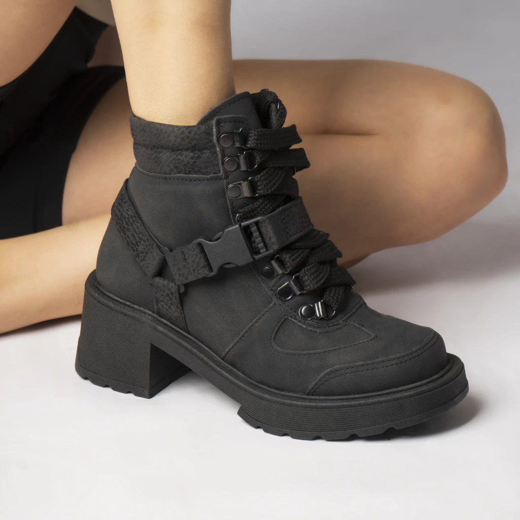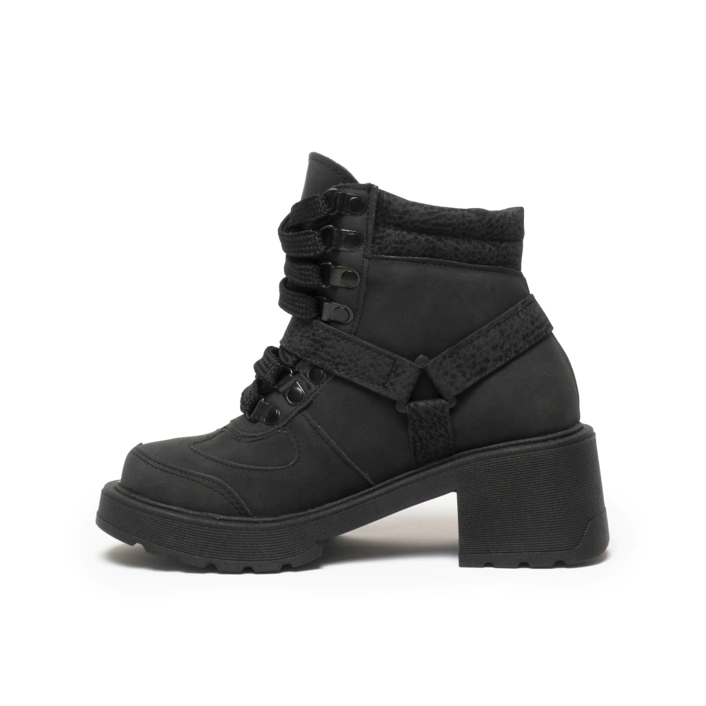 Confeccionado en eco cuero, con detalles de costura y cordones que recorren toda la capellada. Base liviana y cómoda para usar todo el día.