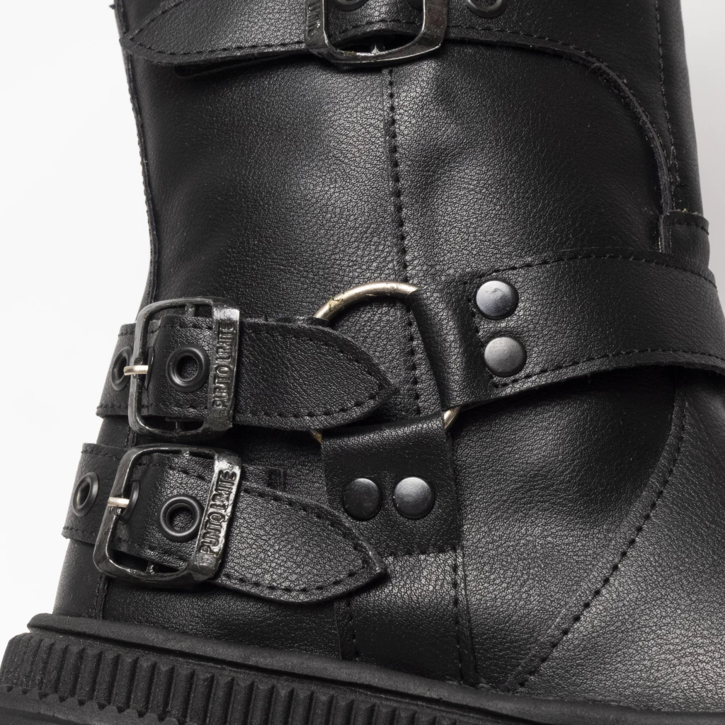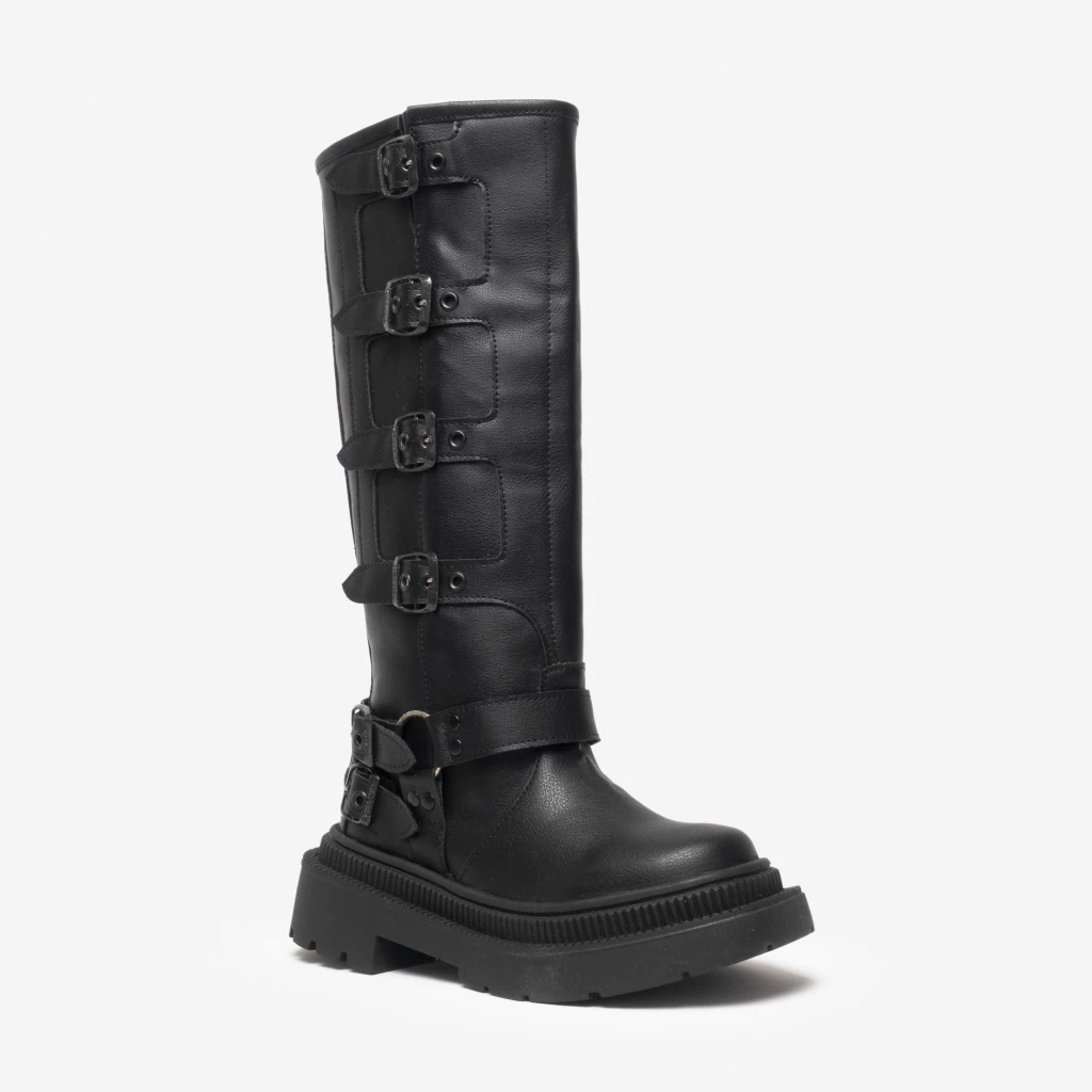 Diseñada en eco cuero y de horma normal, esta bota incorpora apliques en su capellada que realzan su estilo. Una opción versátil y actual, ideal para complementar tus looks de invierno.
