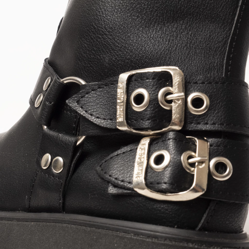 Confeccionada en eco cuero, con detalles de apliques en la capellada que realzan su diseño. Esta temporada incorporamos nuevas texturas, formas y bases que marcan tendencia.