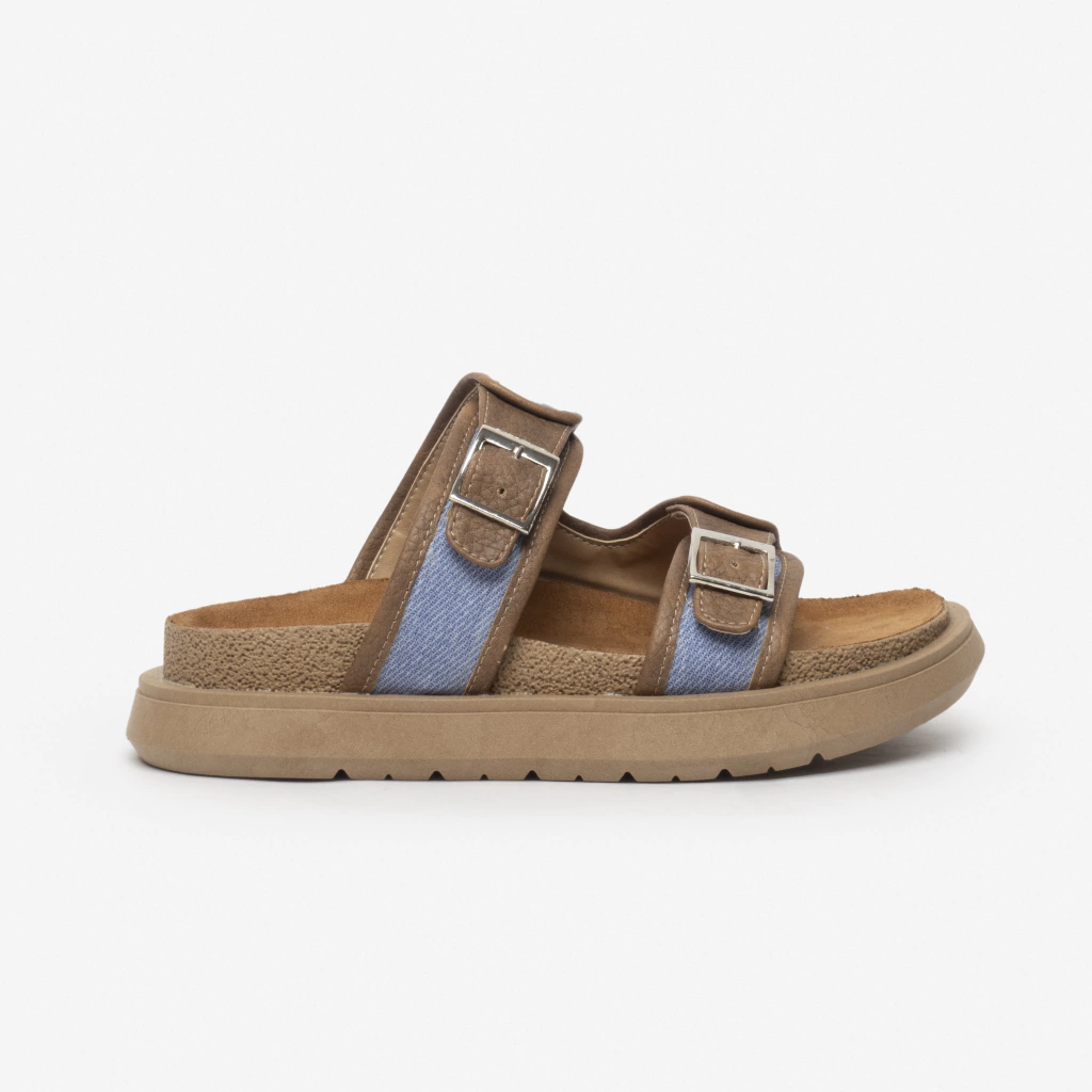 La capellada está confeccionada en material eco cuero y combinada con apliques y texturas.