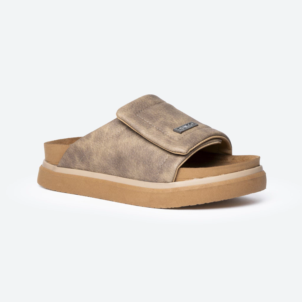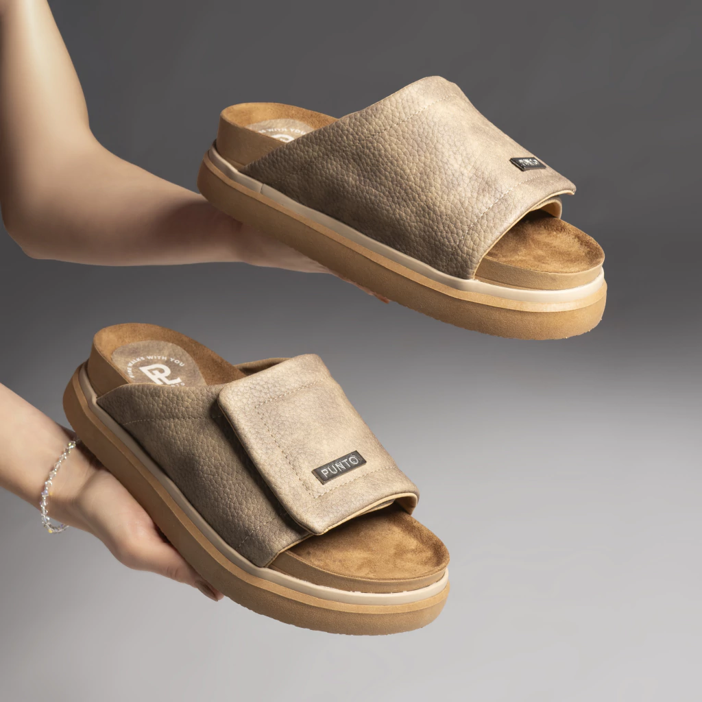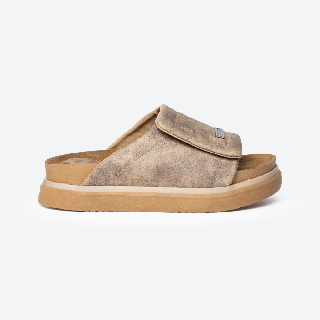 La capellada está confeccionada en material eco cuero y combinada con abrojo para mayor comodidad