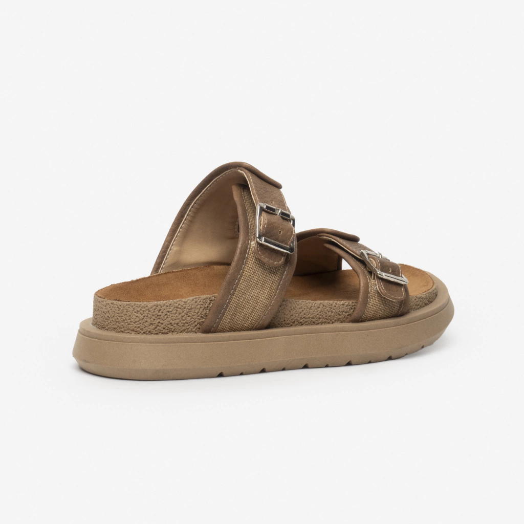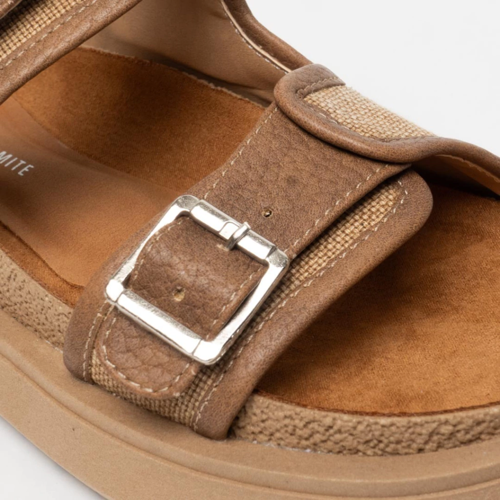 La capellada está confeccionada en material eco cuero y combinada con apliques y texturas.