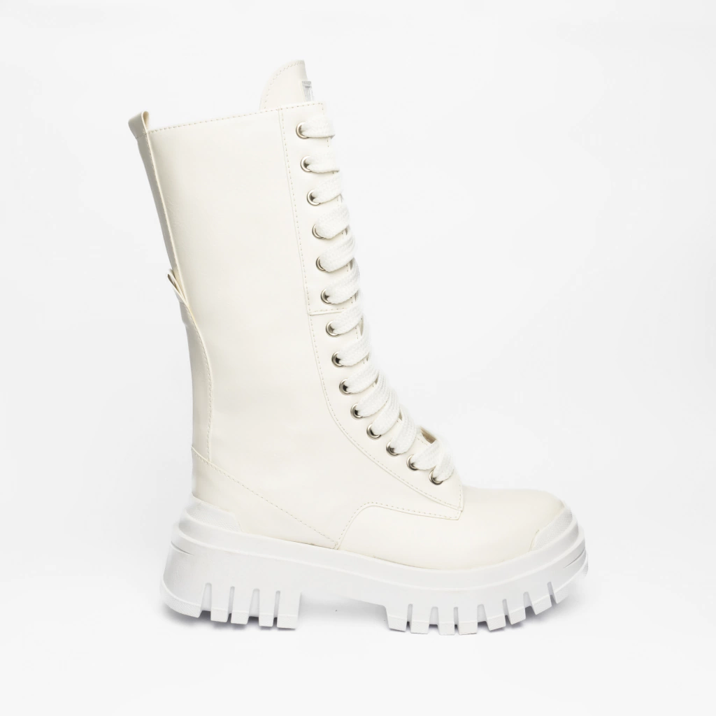 Ideal para armar tu look super canchero, con mucha onda! Borcegos altos de eco cuero negro y detalles de costura, presentan cordones que recorren toda la capellada para mayor ajuste.